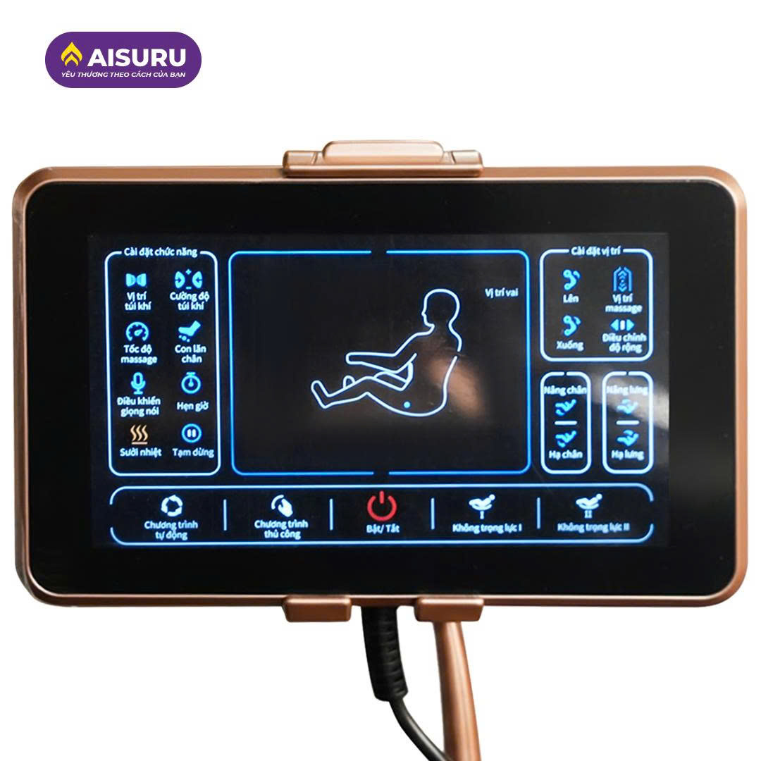 Bộ điều khiển của model UM886 cũng vô cùng đa dạng và tiện lợi. Nào là màn hình cảm ứng LCD 7 inch đầy màu sắc với các nút chạm bằng Tiếng Việt, còn có hệ thống các phím bấm nhanh được bố trí ngay trên tay ghế với núm xoay điều khiển. Và hơn nữa là khả năng điều khiển bằng giọng nói nhờ công nghệ AI thông minh.